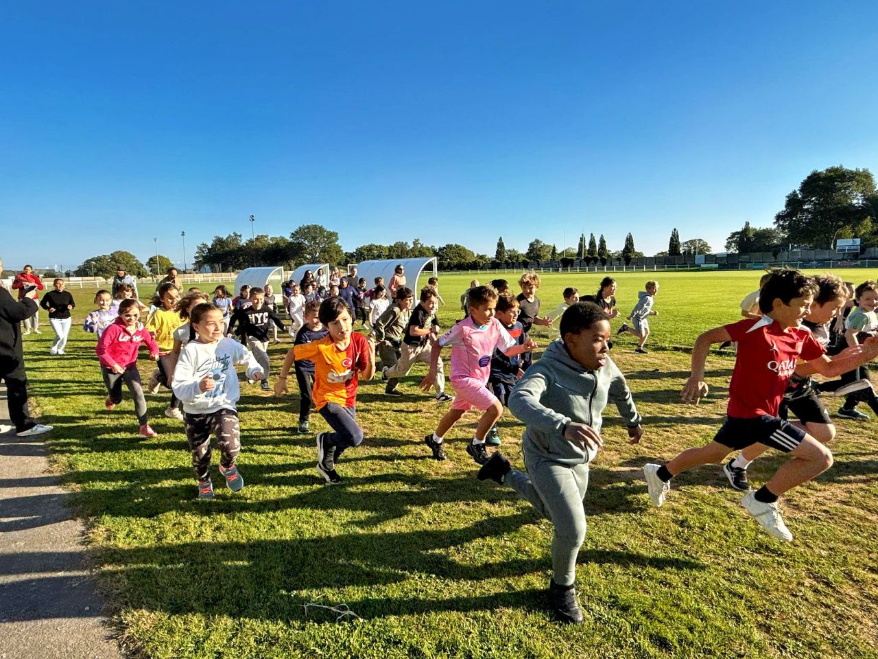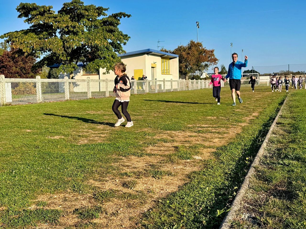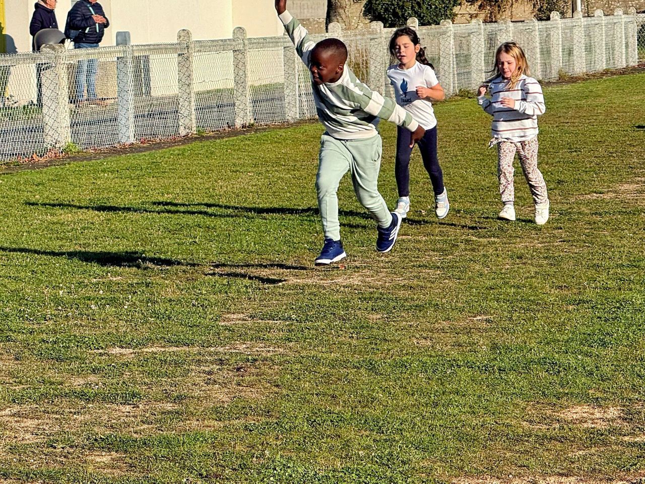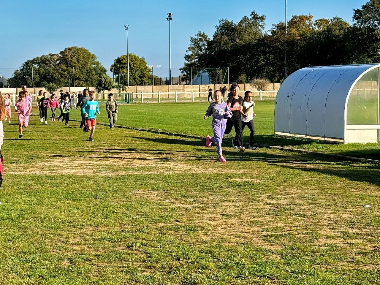 Les plus petits (TPS,PS et MS) ont marché au parc du Plessis, les élèves de la GS au CE2 ont réalisé une course d'endurance au stade de Locunel (Temps de course: 5 min en GS, 6 min en CP, 9 min en CE1 et 12 min en CE2) et les grands ont participé au cross au parc du Plessis organisé pr le collège Notre Dame du Pont.