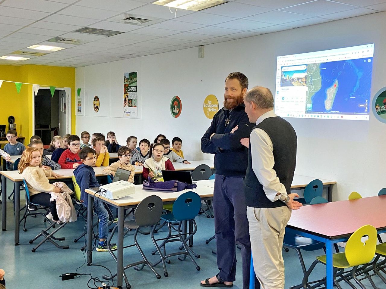 Le Père Gabriel connaît bien notre école, puisqu’il a été en charge de la paroisse en 2017.
