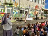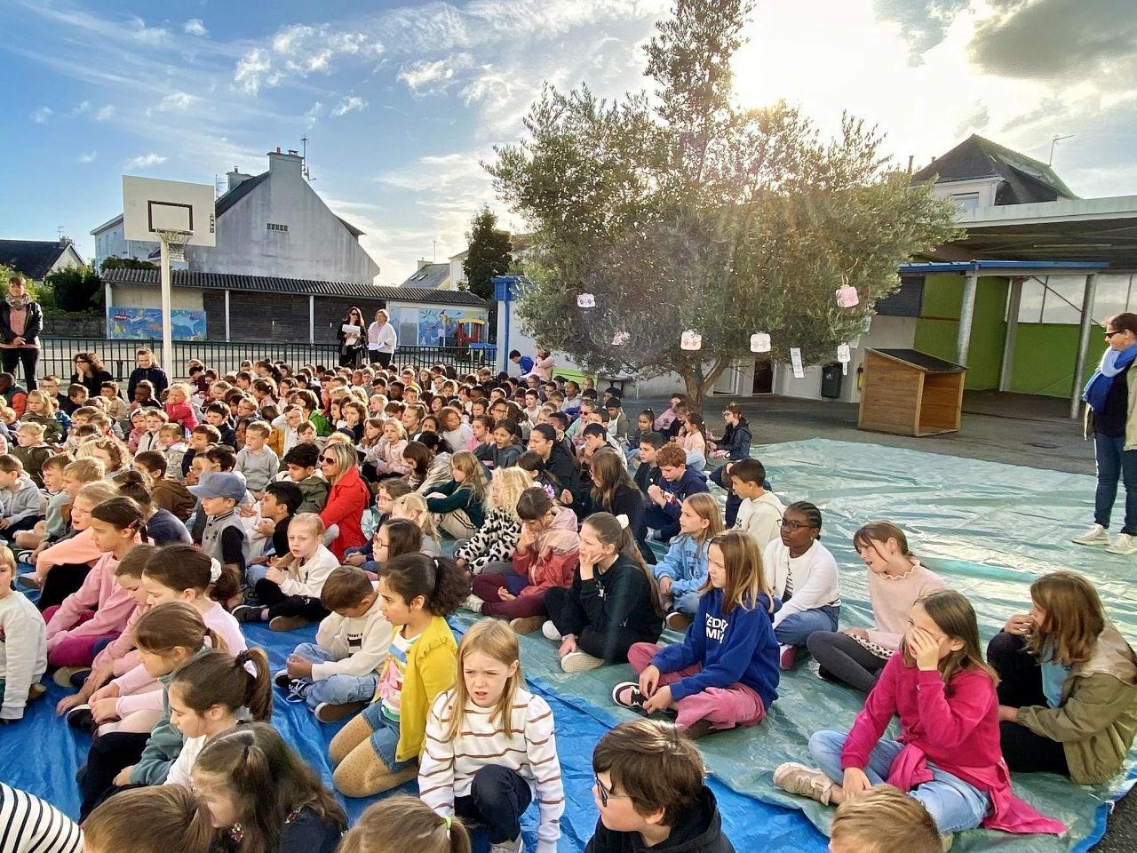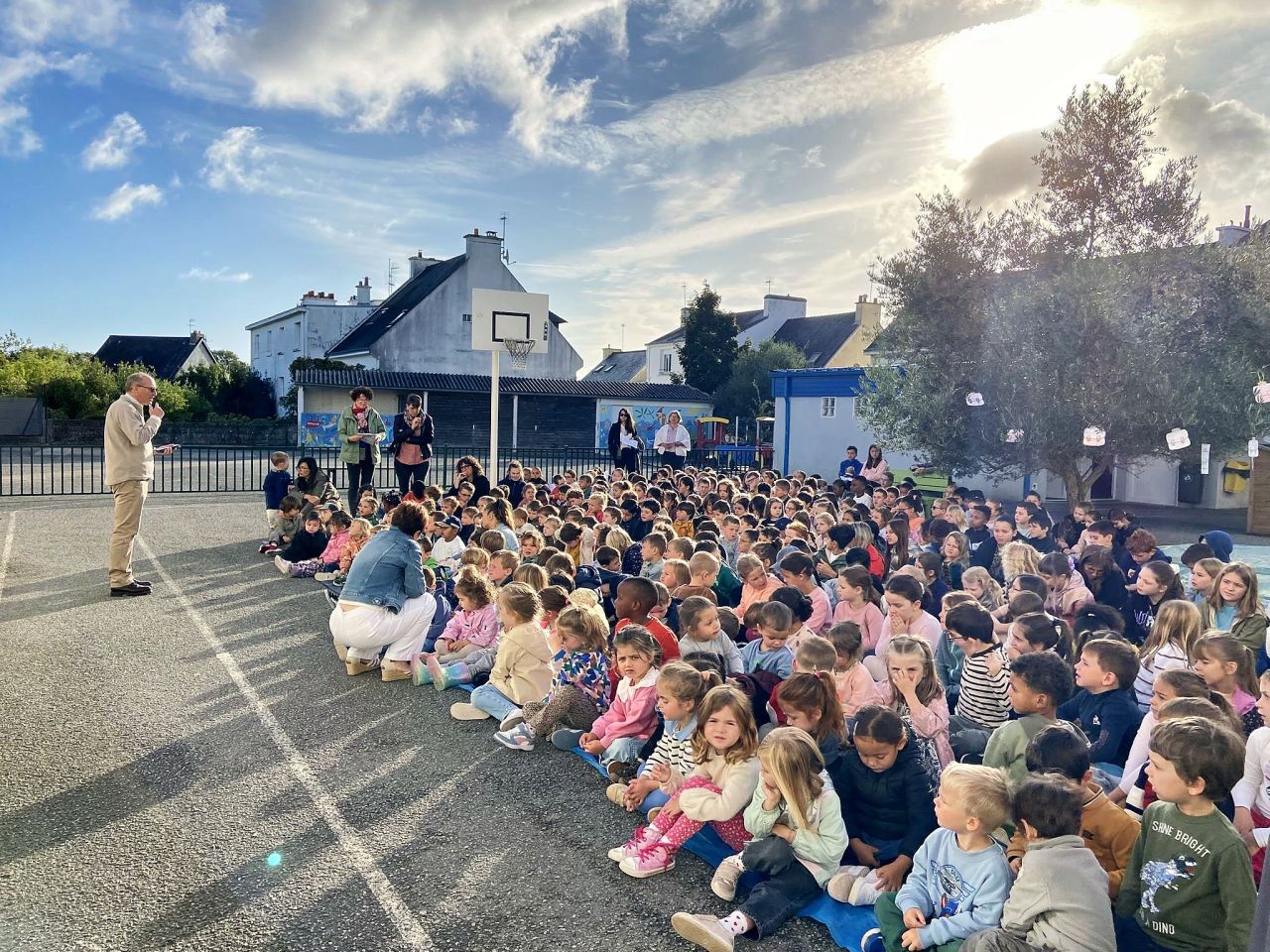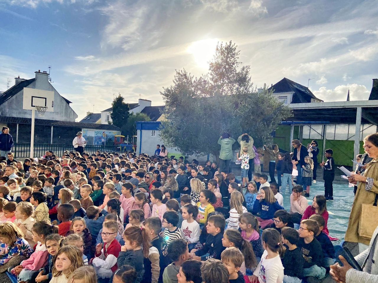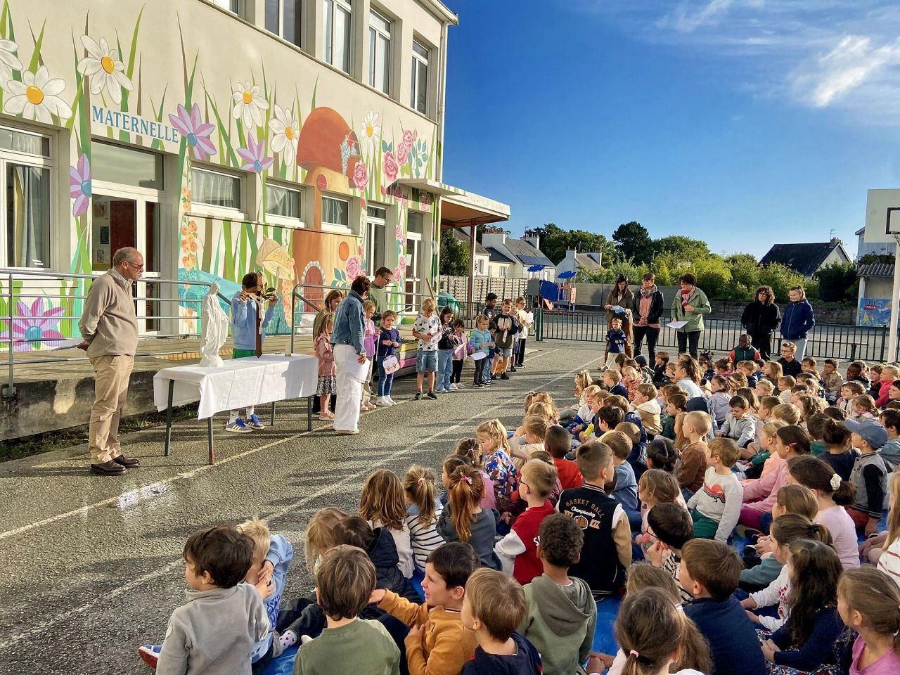 Vendredi 12 septembre, nous nous sommes retrouvés tous ensemble dans la cour de l’école pour vivre un beau moment de rassemblement à l’occasion de la célébration de rentrée et de la bénédiction des cartables.