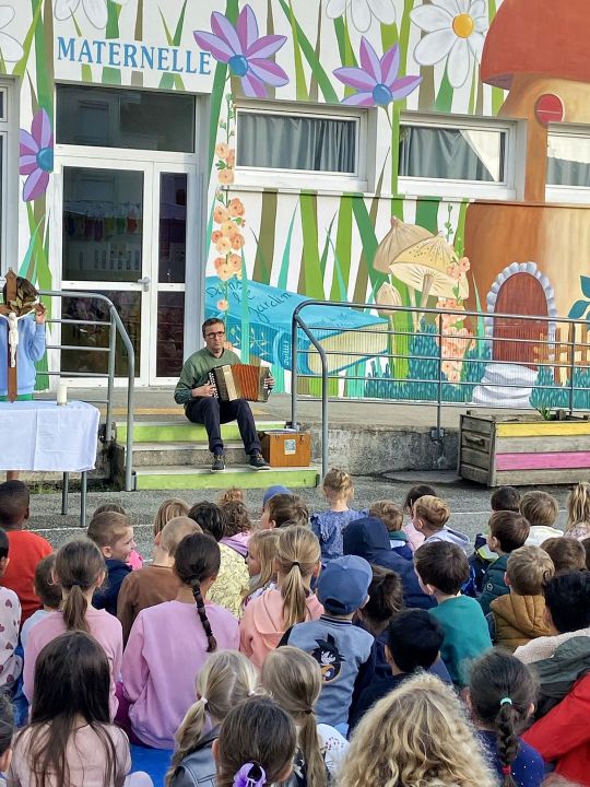 Nous avons eu la joie d’accueillir le Père Marc et Sœur Daisy, qui ont partagé avec nous ce temps fort, riche de sens pour petits et grands.